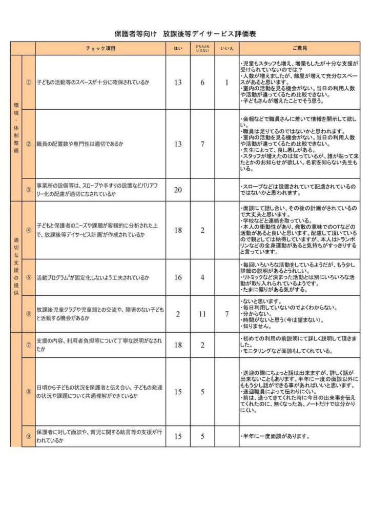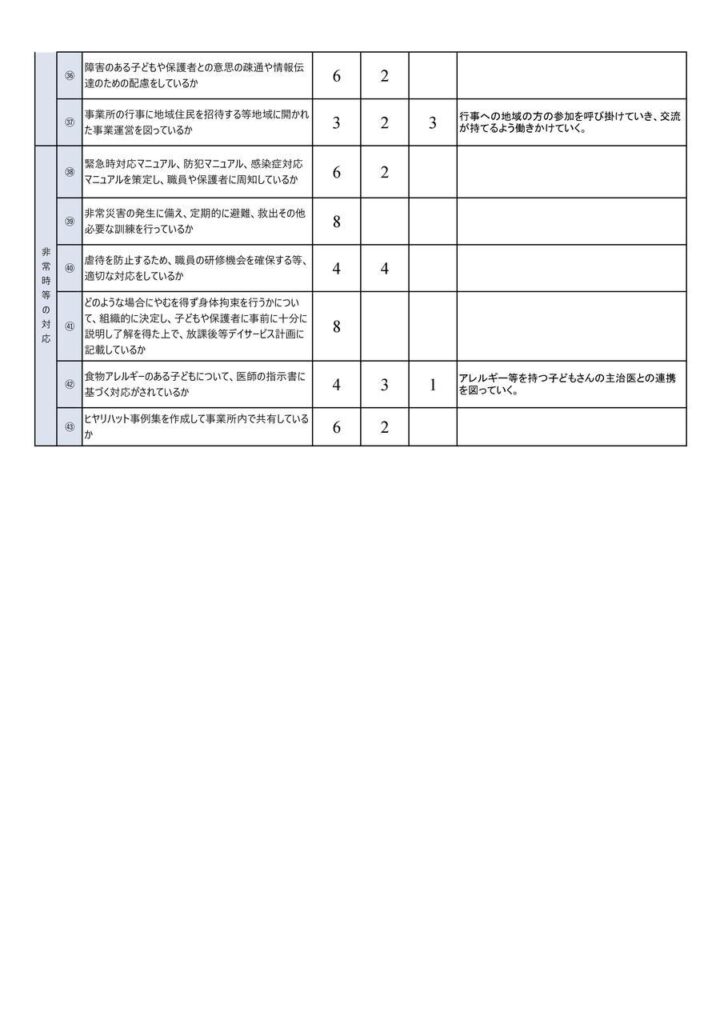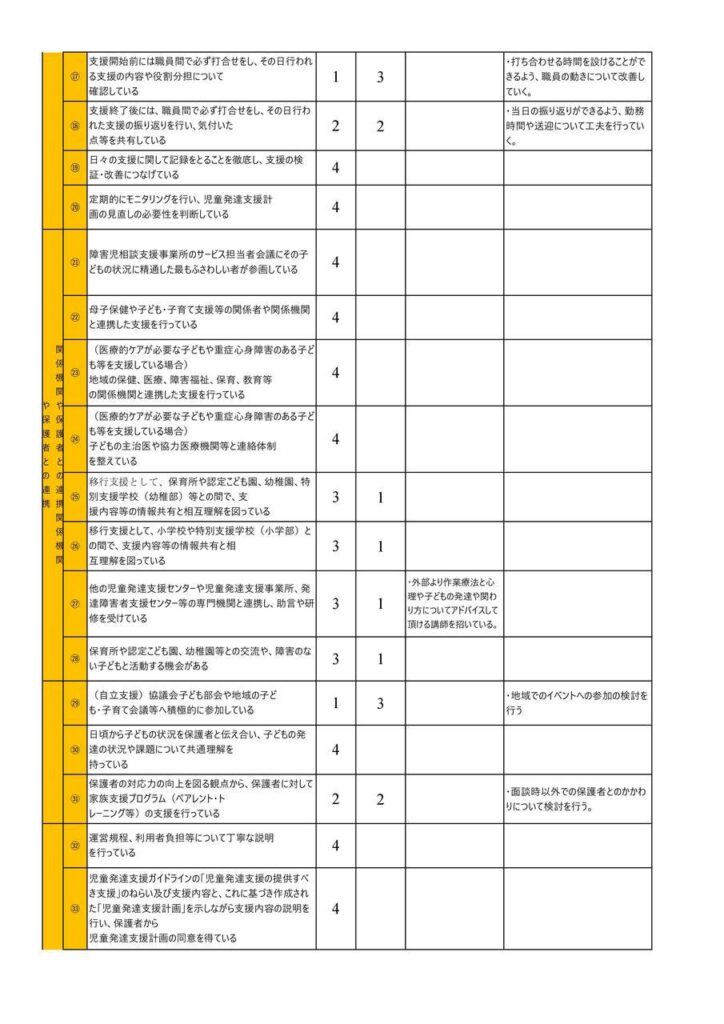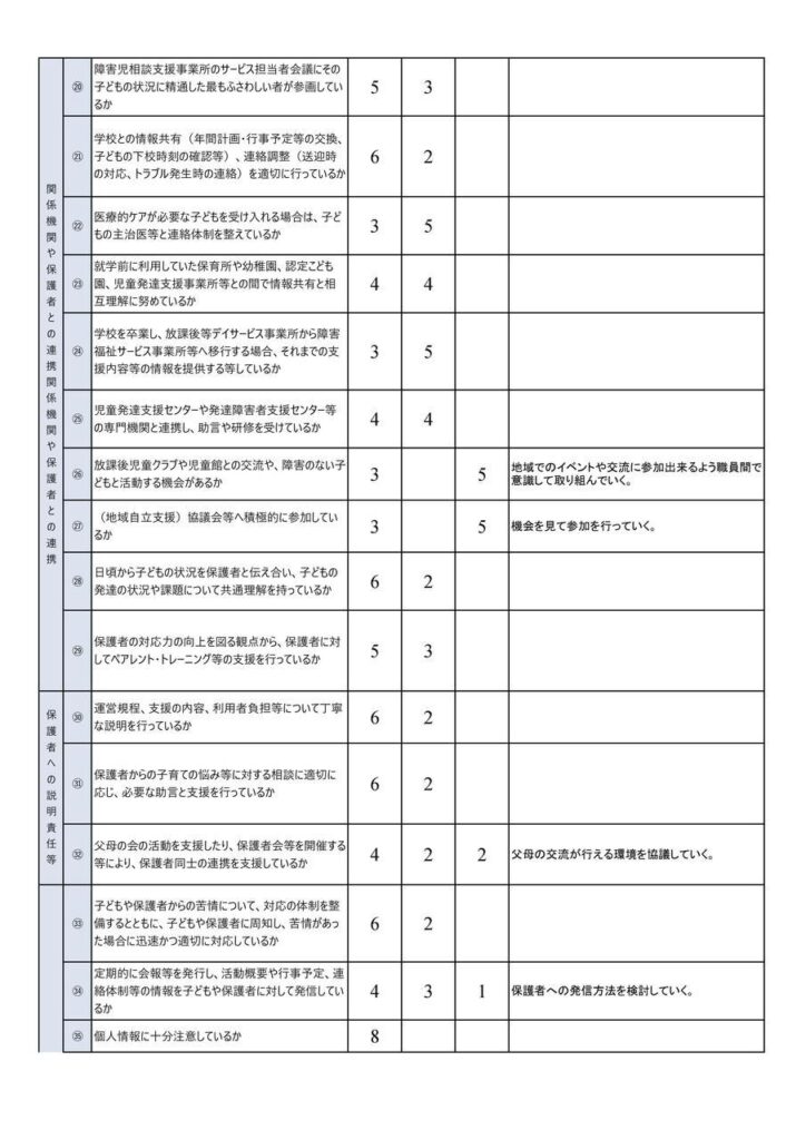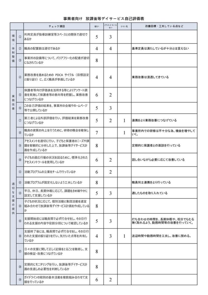 この自己評価は、支援の質の向上のため、厚生労働省のガイドラインに沿って作成されました。